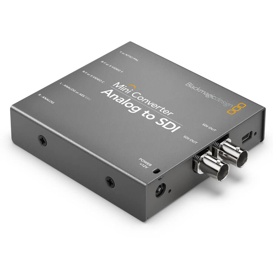 O Blackmagic Mini Conversor Analógico Para SDI, é a solução ideal para a conversão de vídeo componente analógico, S-Video e NTSC/PAL composto para vídeo SDI. O áudio pode ser embutido a partir de entradas analógicas balanceadas ou AES/EBU. Converta equipamentos analógicos, como Betacam SP, VHS, caixas decodificadoras, consoles de videogame e câmeras HDV, para vídeos SDI SD/HD de qualidade incrível.